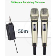 Idéal pour toutes les fêtes, célébrations et tout événement nécessitant des microphones sans fil. Microphones sans fil pour voix avec base de réception sans fil. Totale liberté d'action pour l'animateur, le guide, l'animateur ou le karaoké. Comprend deux microphones sans fil et un récepteur. Réponse de microphone cardioïde unidirectionnelle (180 degrés) pour rejeter le bruit de fond et la coloration hors axe. Connexion très simple à n'importe quelle acoustique - insérez simplement l'unité de réception du signal dans l'entrée du microphone (allumez-la), mettez les piles dans les microphones et allumez les microphones.