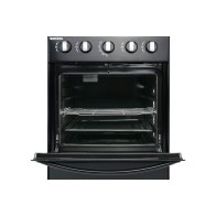 La cuisinière BRUHM BGC-5540IB est un modèle à gaz compact de 50 x 50 cm, de couleur noire. Elle offre 4 brûleurs à gaz de type Euro et un four à gaz intégré avec fonction grill et allumage automatique. Son format gain de place et ses pieds réglables la rendent facile à intégrer dans toute petite cuisine.