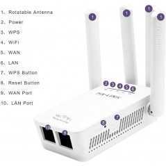 Ce Mini Routeur/Répéteur WiFi PIX-LINK est conçu pour étendre efficacement votre couverture sans fil dans les grandes maisons ou bureaux. Il est doté de quatre antennes externes pour maximiser la portée et la stabilité du signal à travers les obstacles. Très facile à installer en Plug & Play, il se branche directement sur une prise murale, offrant ainsi les modes Répéteur (extendeur) et Mini Routeur pour une connectivité stable de tous vos appareils.