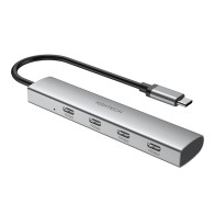 Hub USB-C (gris) : Se connecte à un port USB-C et offre quatre ports USB 3.2 Gen 2 avec une vitesse de transfert de 10 Gbps. Il est idéal comme station d'accueil pour ordinateurs portables.