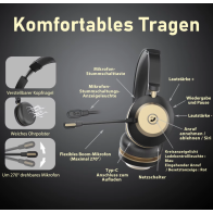 • ✔️Microphone Anti-Bruit Réversible : La perche flexible se porte à droite ou à gauche et peut être tournée à 180° pour un rabattement facile, tout en réduisant les bruits de fond.