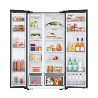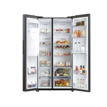 Ce réfrigérateur américain est un modèle Side By Side d'une grande capacité (~560 Litres), idéal pour les familles nombreuses. Ses principaux atouts résident dans l'alliance de l'économie d'énergie et de la technologie : Ultra-Économique et Silencieux : Il est équipé de la technologie Digital Inverter (garantie longue durée et faible niveau sonore) et du mode AI Energy qui optimise la consommation électrique via l'application SmartThings (Wi-Fi). Froid Performance : La technologie No Frost Intégral élimine la corvée de dégivrage, et l'All-Around Cooling assure une température homogène pour une meilleure conservation des aliments. Confort : Il intègre un distributeur d'eau (non raccordé) et présente un design élégant avec une finition Noir Mat.