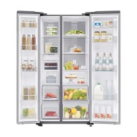 Le Samsung RS57DG4000B4GH est un réfrigérateur américain Side-by-Side offrant une très grande capacité de 564 L grâce à la technologie SpaceMax et une conservation sans givre grâce au Froid Ventilé Intégral (No Frost). Il est doté d'un Compresseur Digital Inverter pour un fonctionnement ultra-silencieux (37 dB) et intègre le Wi-Fi pour surveiller et optimiser la consommation énergétique via le mode AI Energy de SmartThings.