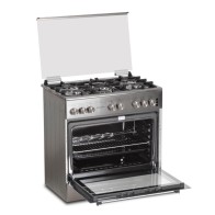Cette cuisinière tout gaz de large format 90x60 cm est idéale pour les grandes familles, combinant une table de cuisson à 5 feux gaz puissants (dont un Wok) et un four à gaz de très grande capacité. L'ensemble est sécurisé par un système thermocouple sur tous les foyers, et arbore une finition Grise/Inox élégante et professionnelle.