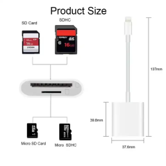 Cet adaptateur est l'outil indispensable pour importer directement des photos et vidéos depuis des cartes SD et Micro SD vers votre iPhone ou iPad (modèles Lightning) en toute simplicité. Grâce à sa fonctionnalité Plug & Play, il permet un transfert rapide vers l'application 'Photos' de votre appareil sans nécessiter d'application externe.