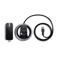 Hub USB-C (gris) : Se connecte à un port USB-C et offre quatre ports USB 3.2 Gen 2 avec une vitesse de transfert de 10 Gbps. Il est idéal comme station d'accueil pour ordinateurs portables.