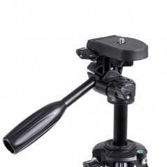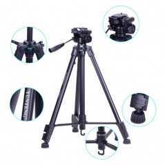 Le YUNTENG VCT-3000 est un trépied professionnel en aluminium qui atteint une hauteur exceptionnelle de 3 mètres, idéal pour les prises de vue nécessitant une perspective en hauteur comme les événements ou la vidéo. Robuste, il supporte de lourdes charges (jusqu'à 3 kg) et est équipé d'une tête panoramique à trois voies pour des réglages précis de la caméra vidéo ou DSLR.