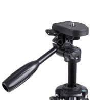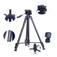 Trépied en alliage d'aluminium, léger et compact, robuste et durable. Design à double niveau à bulle, trois boutons de réglage d'amortissement tête effet boule, réalisant tout angle de tir, précise et efficace.3 sections. Colonne jambe avec libération rapide verrous, donnant une manipulation plus commode de jambe, satisfaire votre hauteur voulu lors de la prise de photos. Detachable plateau rapide pour connecter rapidement à l'appareil photo ou le caméscope. Caractéristiques avec une tête pan-tilt-swivel avec un niveau à bulle.